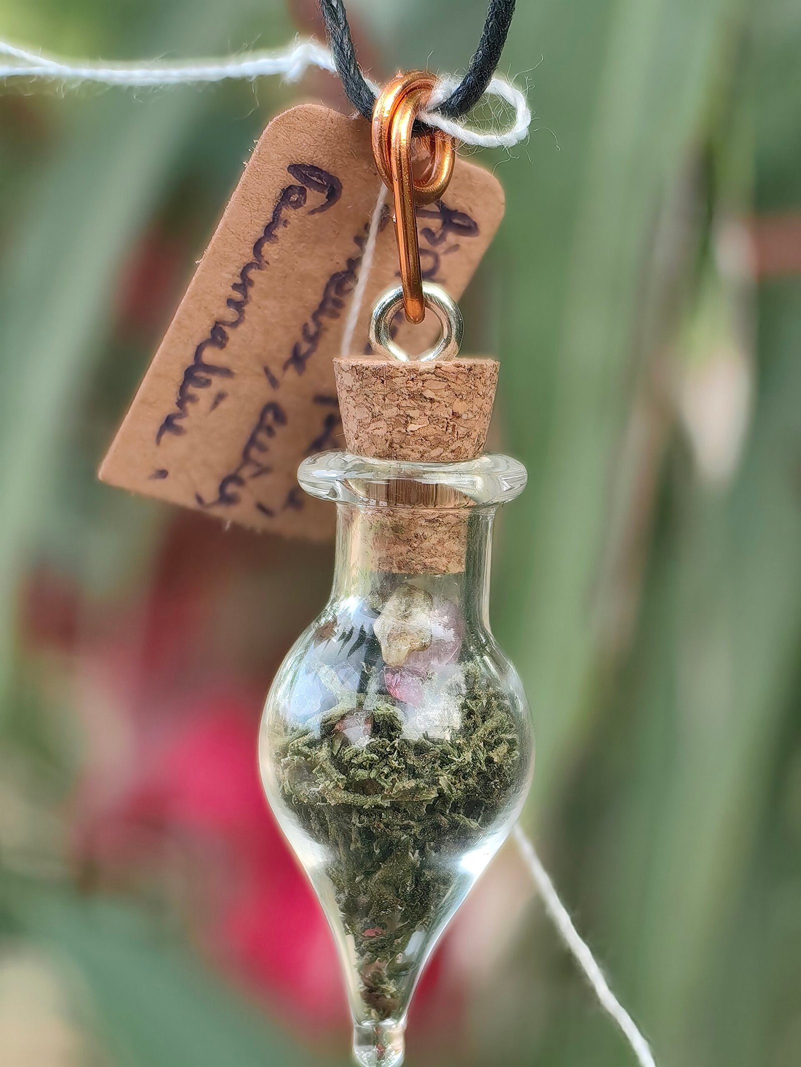 Cette Potion des Fées est un bijou-talisman unique, assemblé avec amour et conscience dans mon atelier.